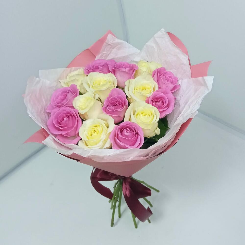 Букет из 15 роз “Клубничный микс”