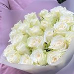 Лента атласная – 1 шт.Роза белая – 25 шт.Пленка матовая – 1 шт.
