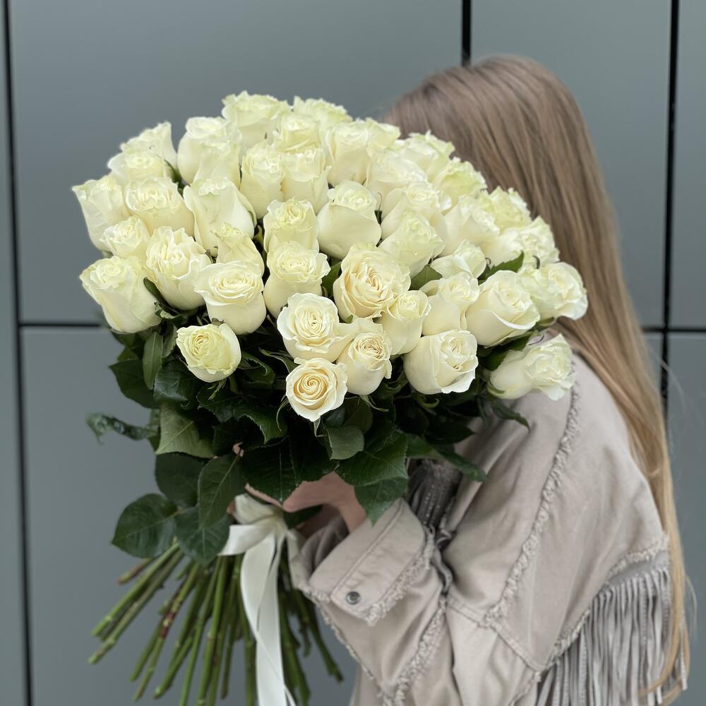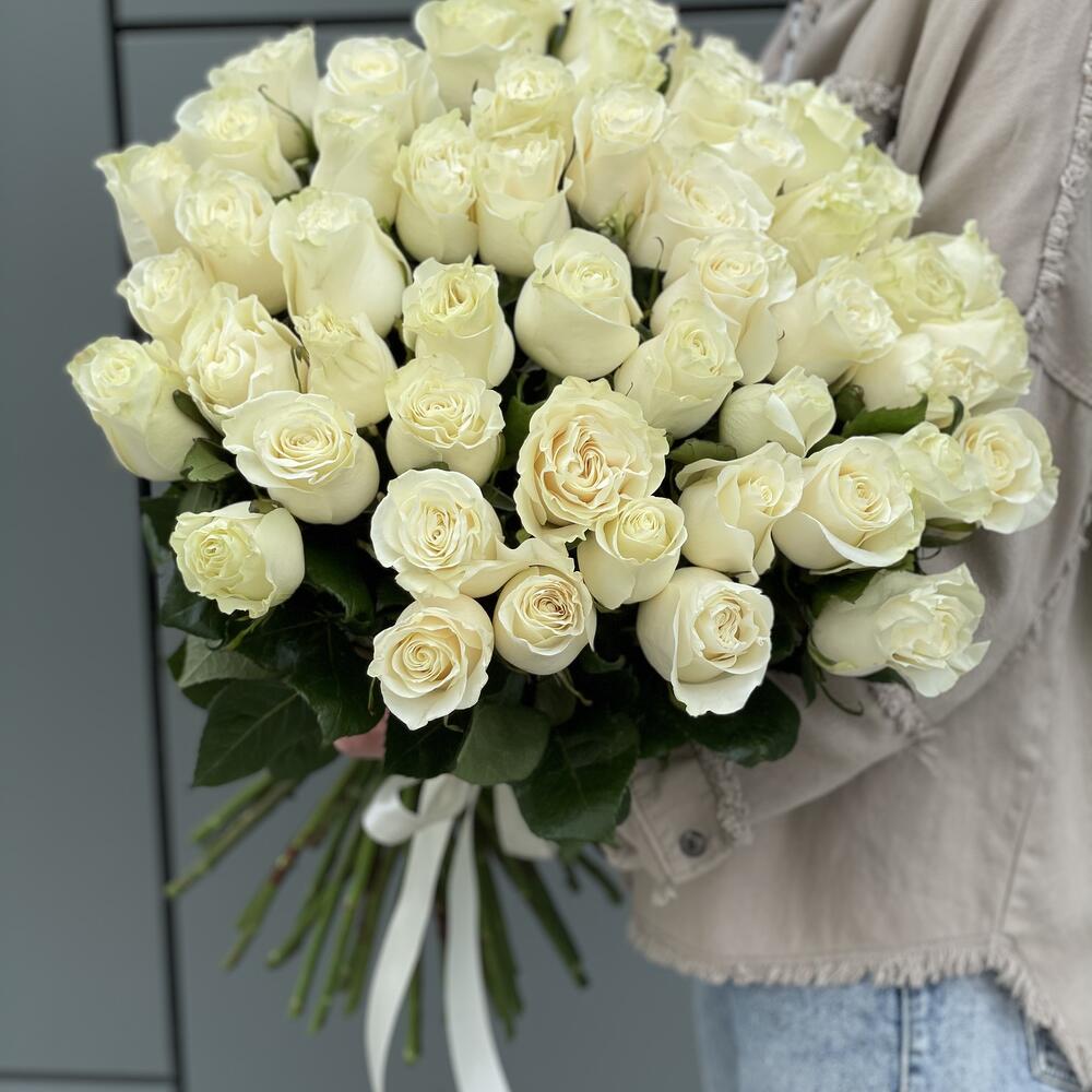 Метки: 14 февраля, 51 роза, Белые розы, от 5000 руб, Роза 50 см