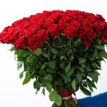 Роза голландская красная – 101 шт.Лента атласная – 2 шт.Открыточка с вашими пожеланиями – 1 шт.хорошее настроение – 100 шт.инструкция по уходу за цветами – 1 шт.коробка переноска – 1 шт.Кризал – 1 шт.