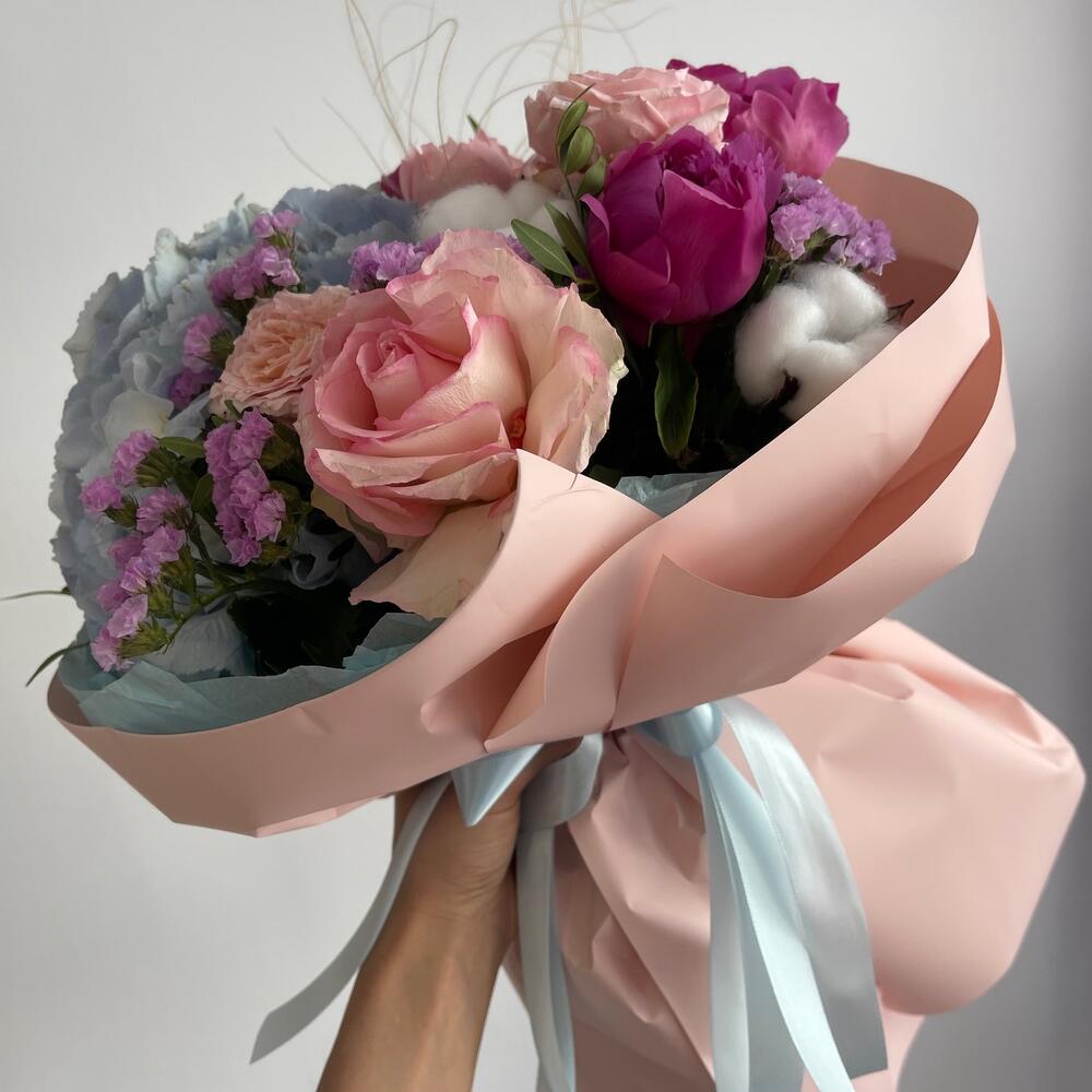 Букет из гортензии ,пиона ,тюльпана ,французская роза
