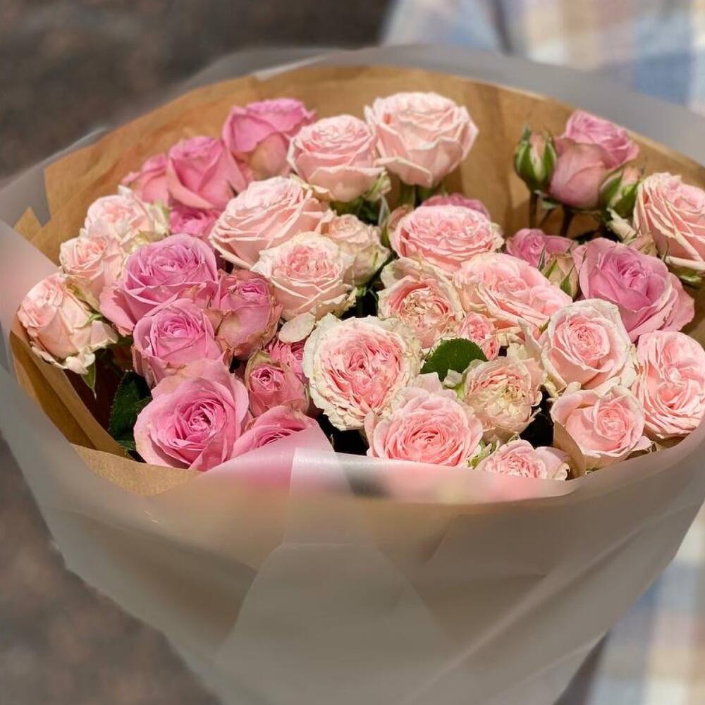 Букет из кустовой пионовидной розы Джульетта и эвкалипт