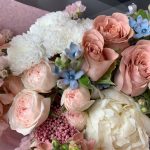 Букет из кустовой пионовидной розы, пиона и маттиолы «Радость»