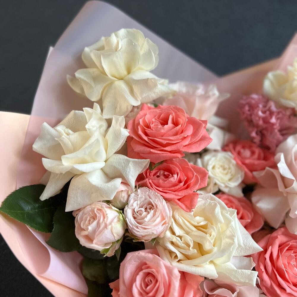 Букет из одноголовой и кустовой розы Персиковый смузи
