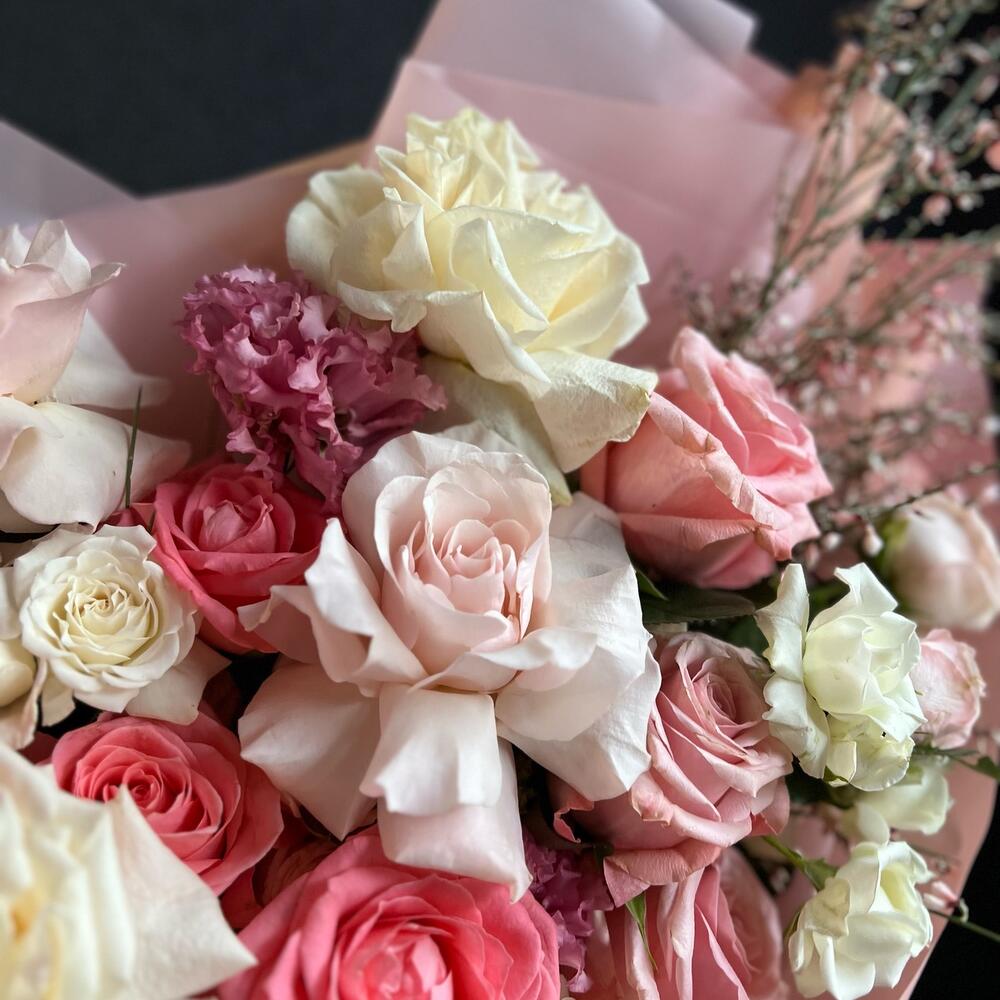 Букет из нежных роз и генисты