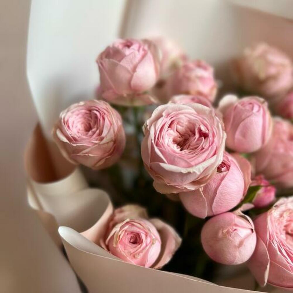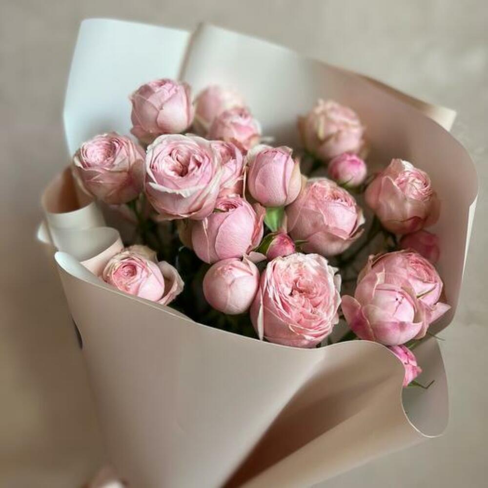 Пионовидная кустовая роза – 3 шт.декоративная упаковка – 1 шт.Атласная лента – 1 шт.