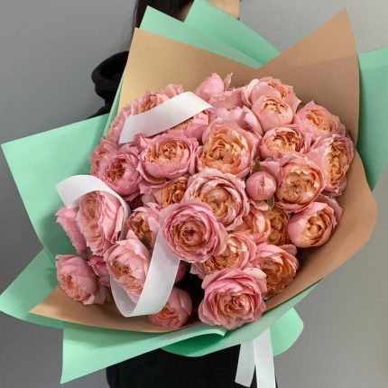 Mono bouquet 34 из 15 пионовидных роз с эвкалиптом