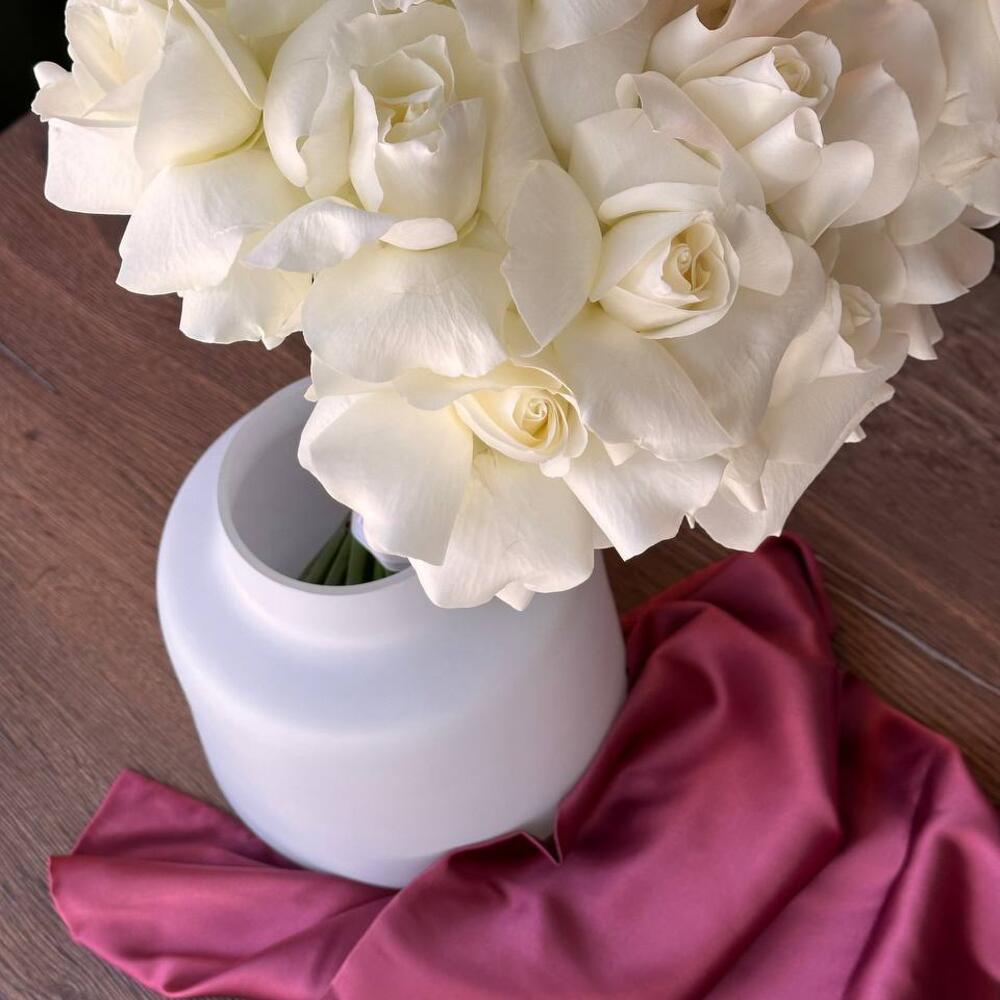 Подарочная упаковка – 1 шт.Лента атлас – 1 шт.Роза белая одноголовая – 19 шт.средство для продления жизни срезанных цветов – 1 шт.