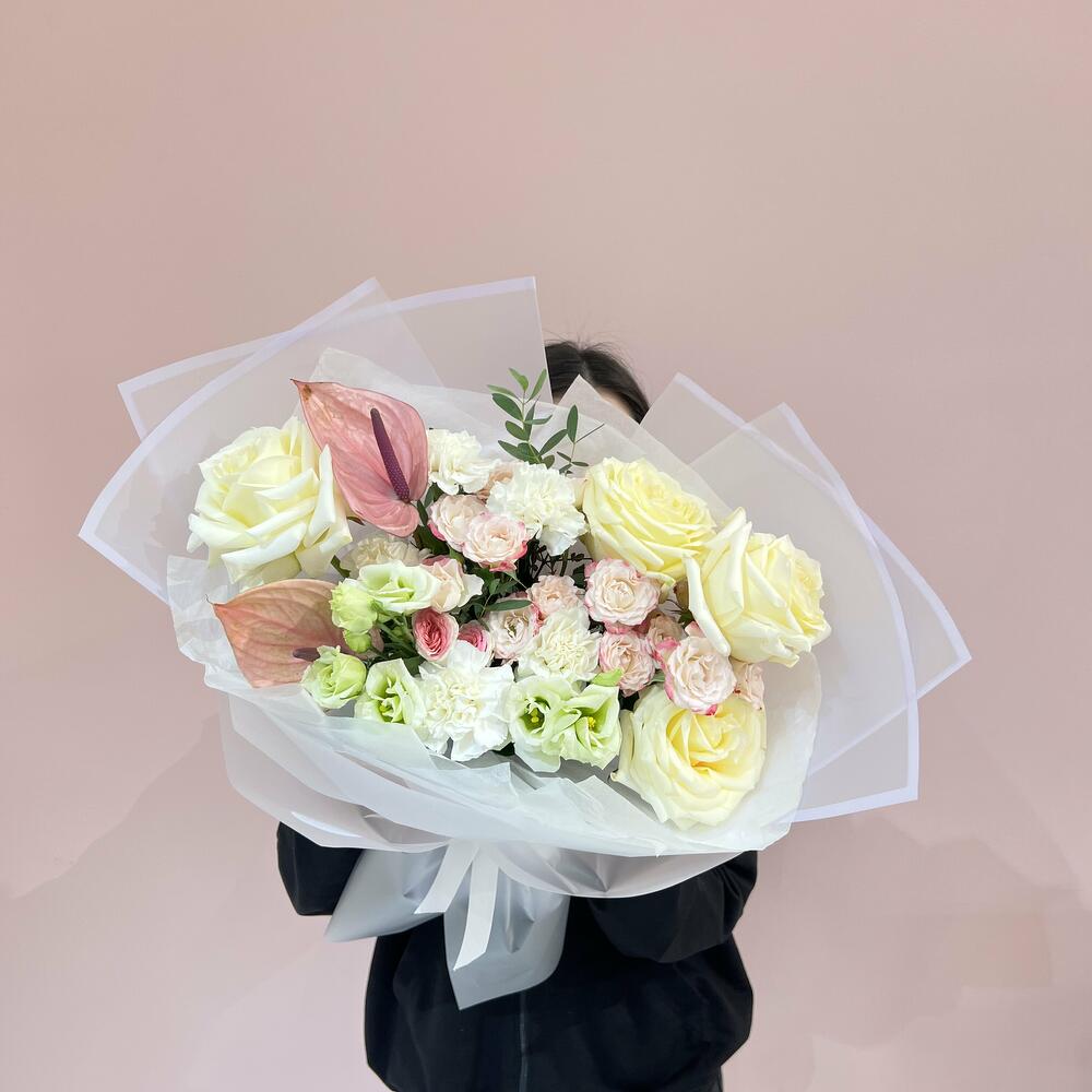 Гвоздики, Кустовые розы, Лизиантусы, Пионовидные розы, Розы