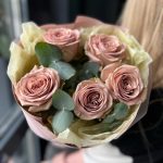 Букет «Пудровая Роза с эвкалиптом»