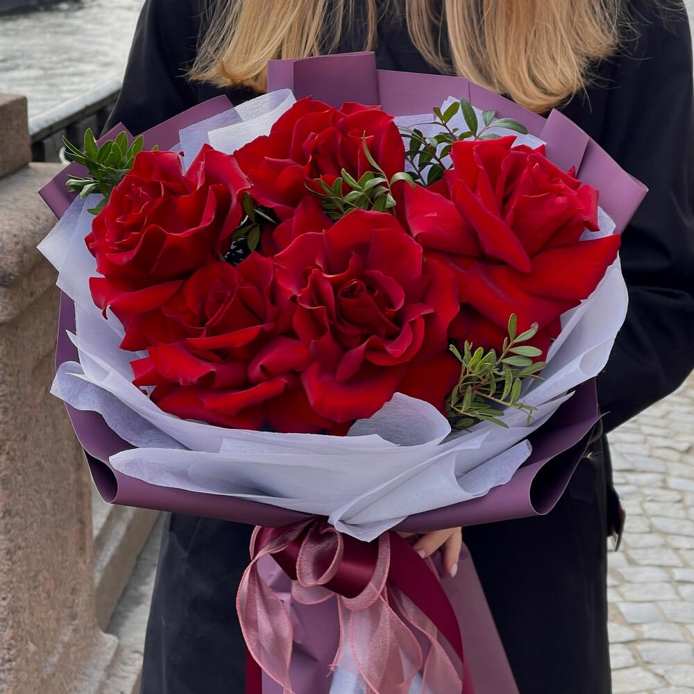 Букет с красной французской розой «Вишнёвый поцелуй»