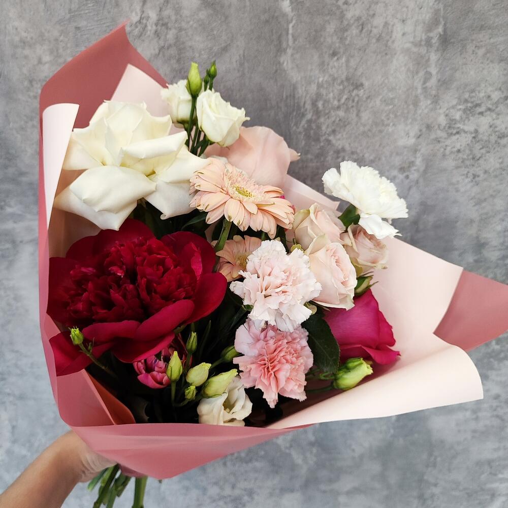 Букет с пионом и розами Diana