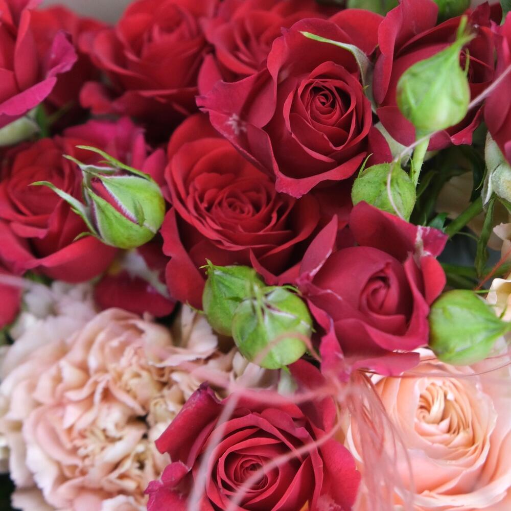 Категории: Гвоздики, Кустовые розы, Пионовидные розы, Розы