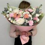 Охапка кустовых пионовидных роз