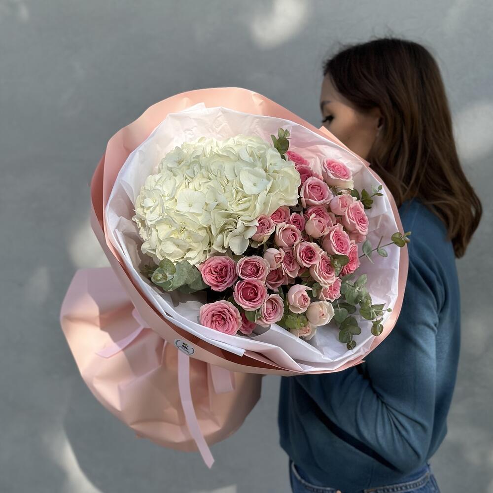 Гвоздики, Кустовые розы, Пионовидные розы, Розы