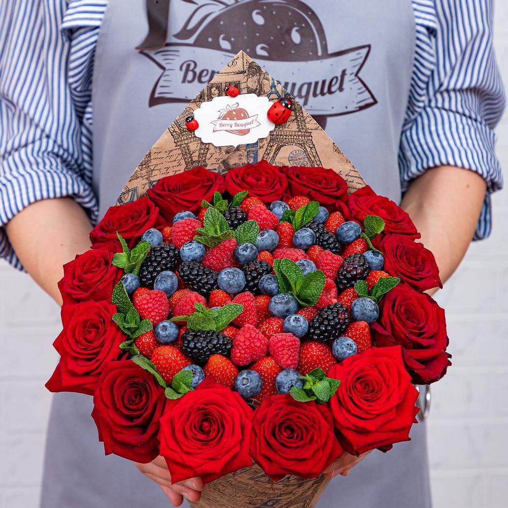ягоды – 1000 гр.Роза – 13 шт.