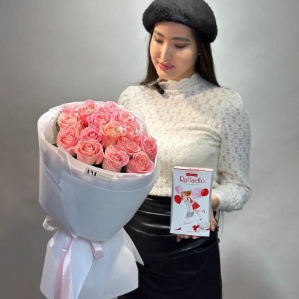 Комбо 15 роз + Raffaello