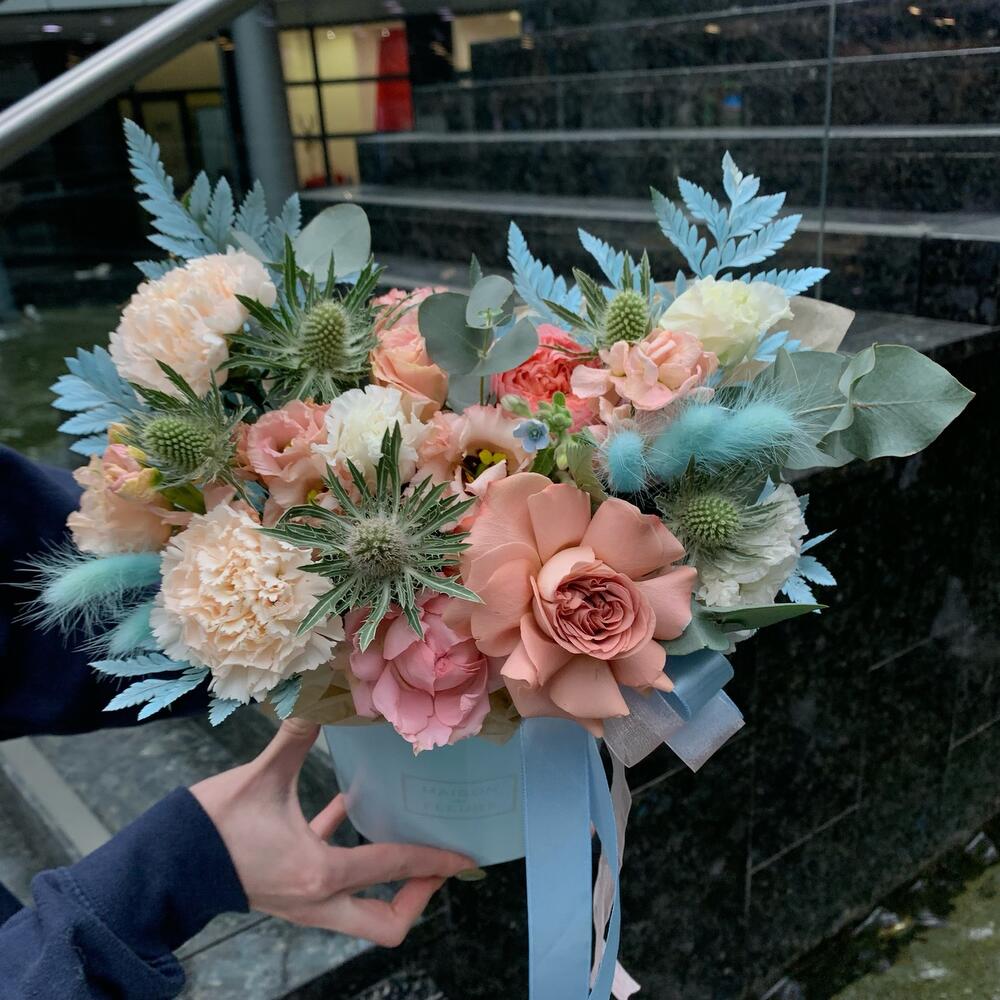 “В твоих глазах”: нежная шляпная коробка с французскими розами