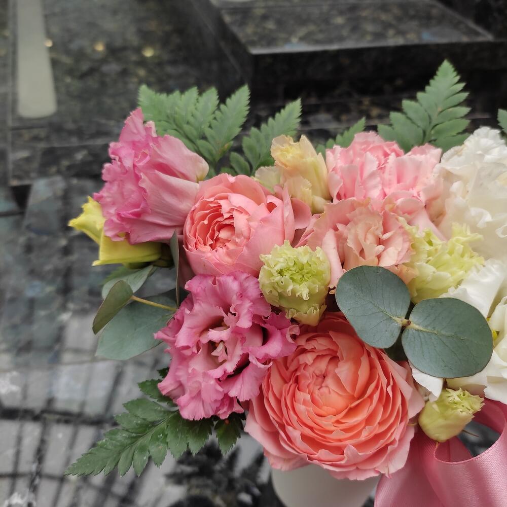 Цветы в коробочке розово белые