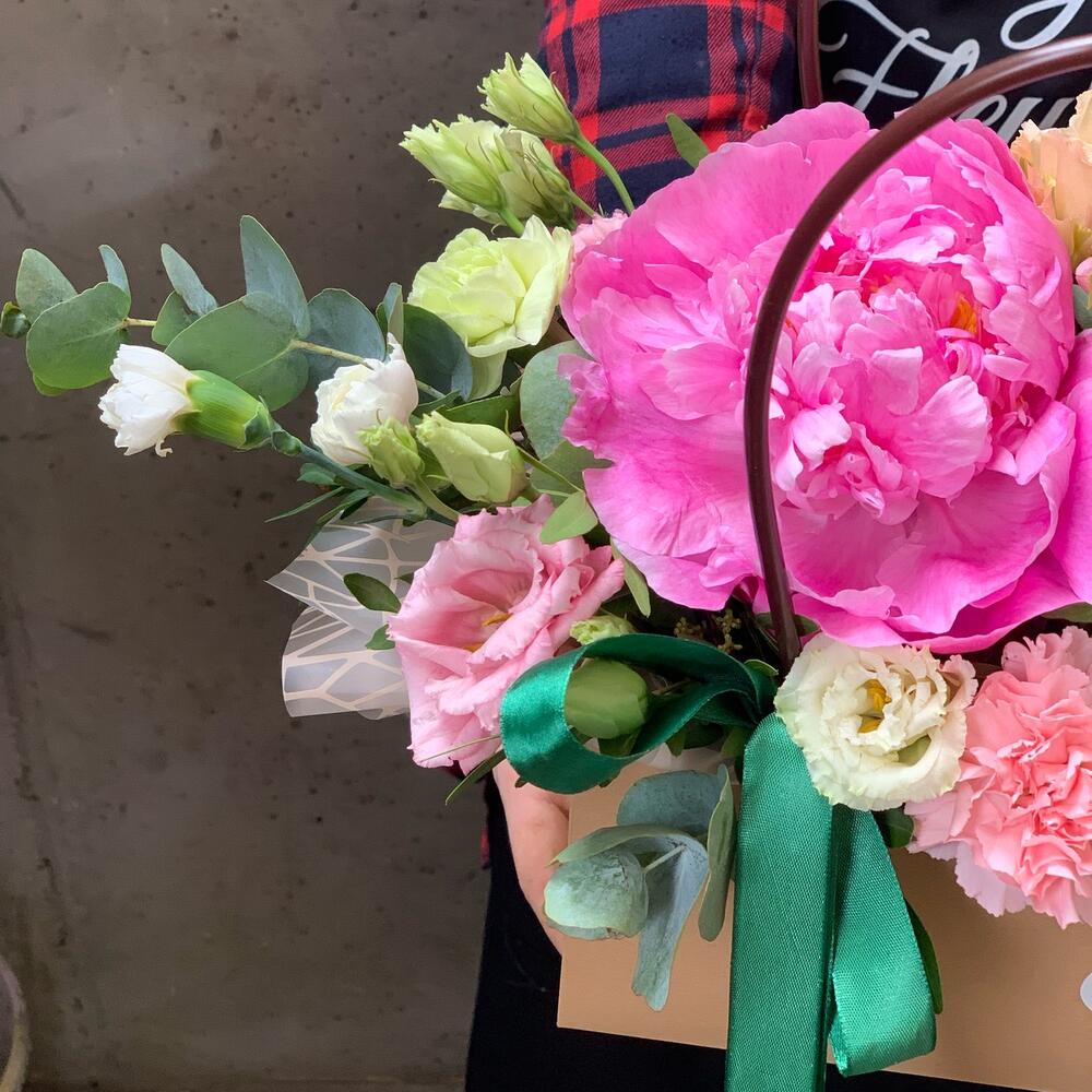 Удобная композиция в крафтовом пакете с игрушкой ручной работы будет замечательным подарком каждому получателю!!! P.S. В не сезон Пионов,будет замена на Пионовидные розы.