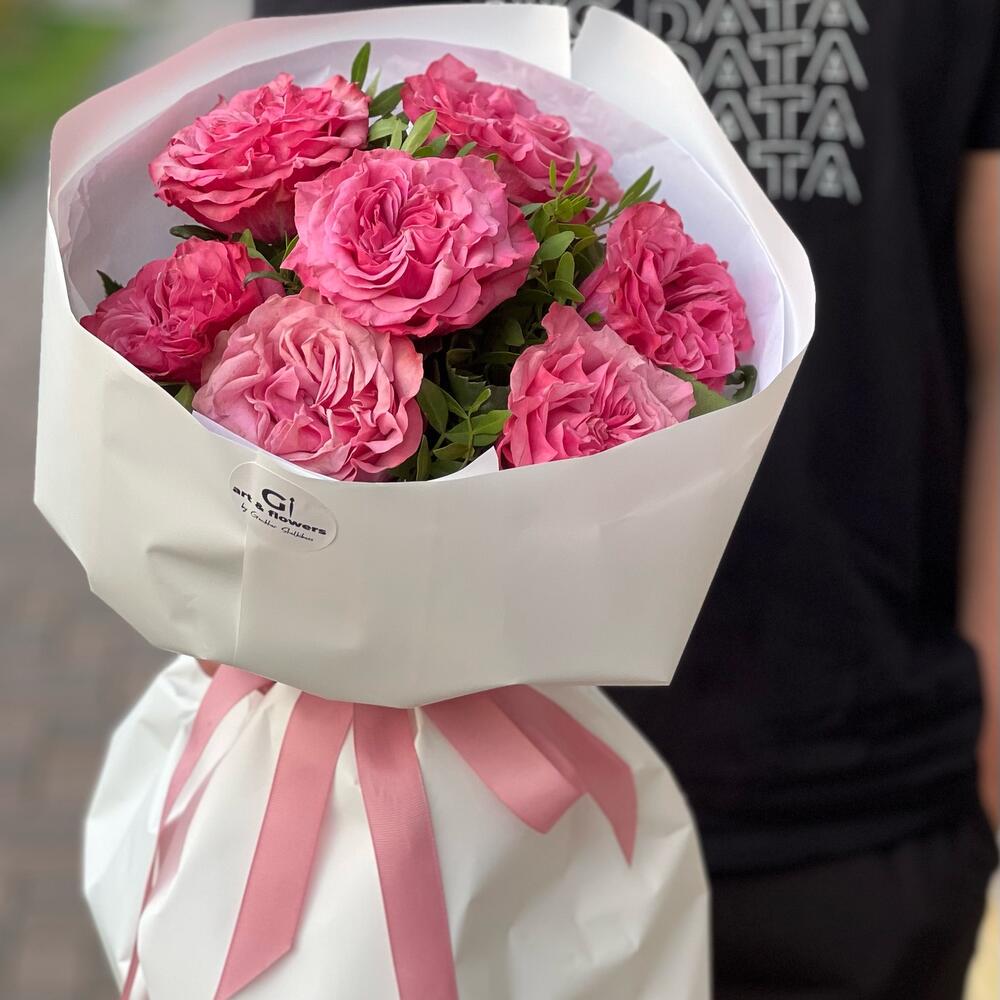 Евро-Букет из Пионовидных Роз + открытка ручной работы в подарок