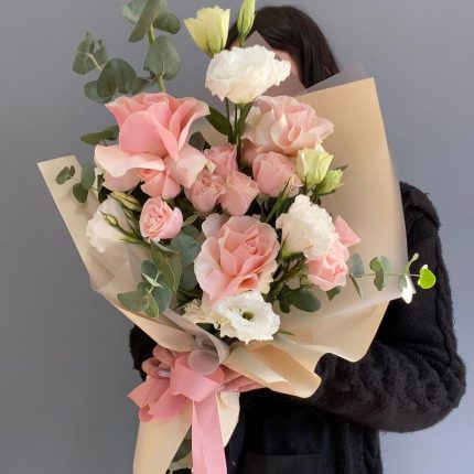 Гвоздики, Лизиантусы, Розы, Тюльпаны