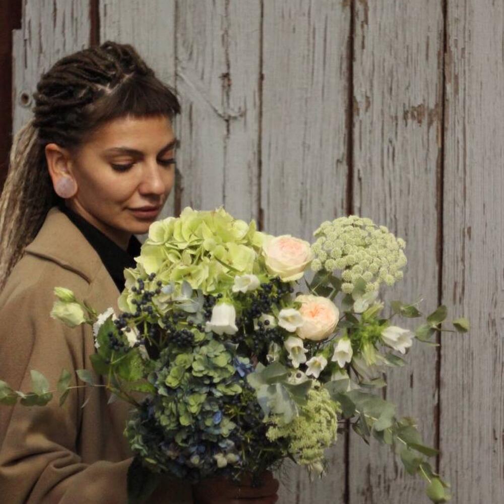 “Эвкалиптическая роскошь” гортензия и пионовидная кустовая роза