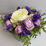 Роза одноголовая – 1 шт.Роза кустовая – 3 шт.Статица – 1 шт.туя ветка – 1 шт.Декор – 1 шт.Оазис флористический – 1 шт.кружка керамическая – 1 шт.