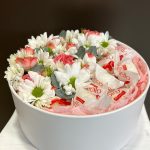 “Сладкое сердце ” – цветочная композиция с сладостями в коробке “Сердце”