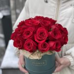 роза красная freedom – 25 шт. Коробка – 1 шт. Оазис – 2 шт.