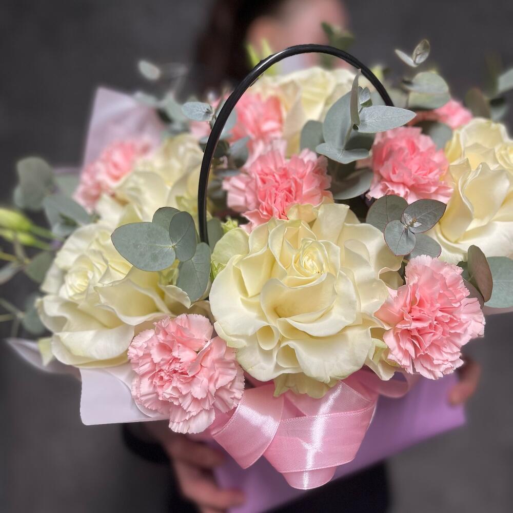 Корзина с цветами,ажурные розы