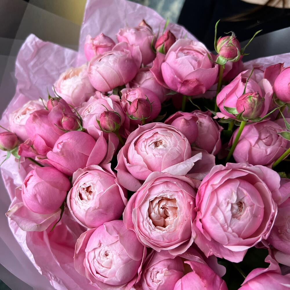 mono bouquet 146 из кустовых пионовидных роз сорта Silva Pink
