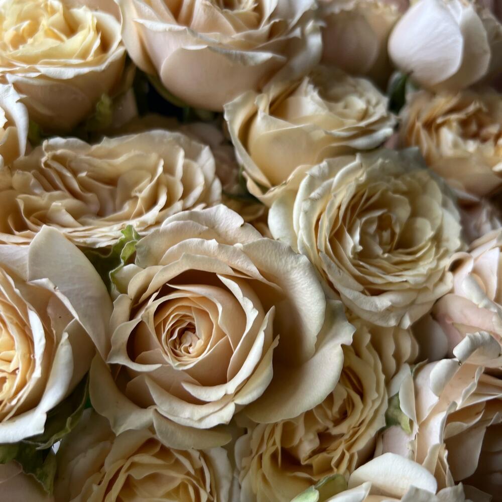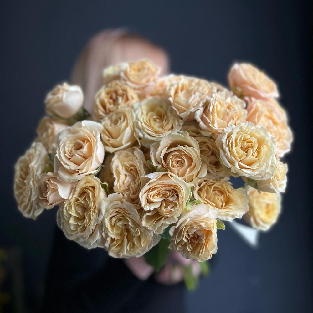 роза кустовая сахара – 9 шт.Упаковка дизайнерская – 1 шт.Лента атласная – 1 шт.