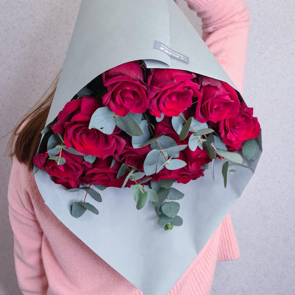 розы эксплорер эквадор – 15 шт.Эвкалипт – 9 шт.Упаковка дизайнерская – 1 шт.