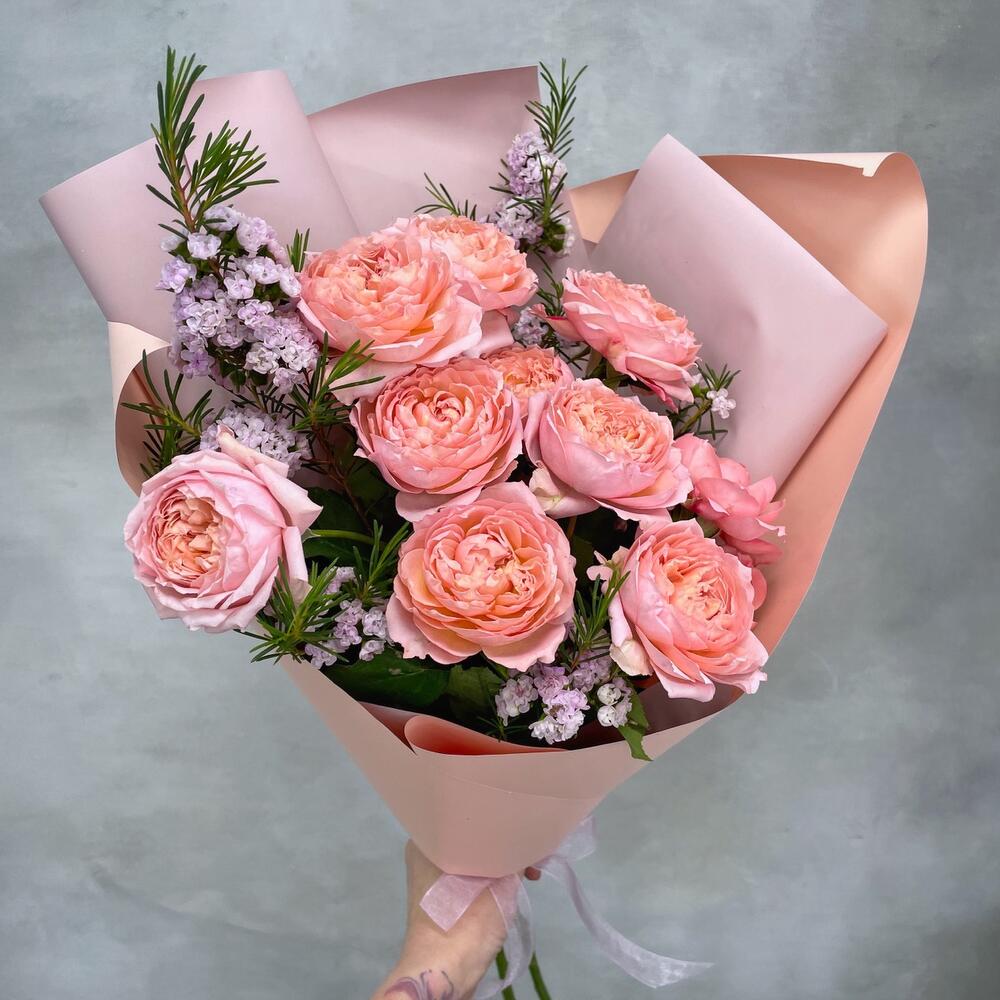 Ваксфлауэр – 1 шт.Упаковка – 1 шт.Роза пионовидная кустовая – 3 шт.