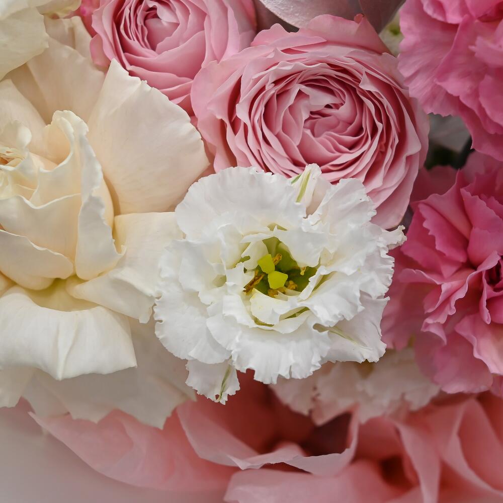 Категорий: Гвоздики, Кустовые розы, Лизиантусы, Пионовидные розы, Розы