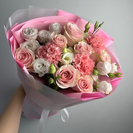 Гвоздики, Кустовые розы, Пионовидные розы, Розы