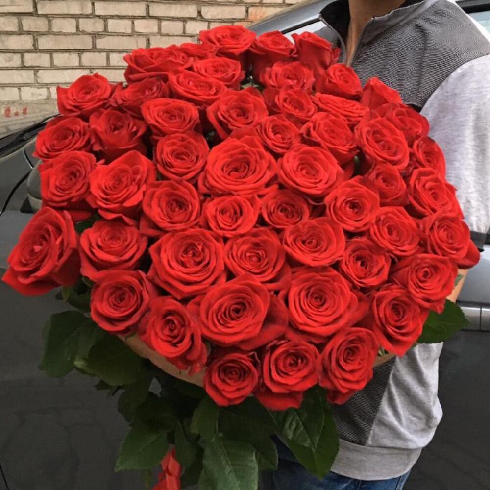 Букет из 51 красной розы 35-40 см (Кения) под ленту