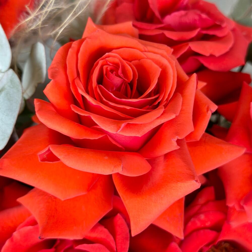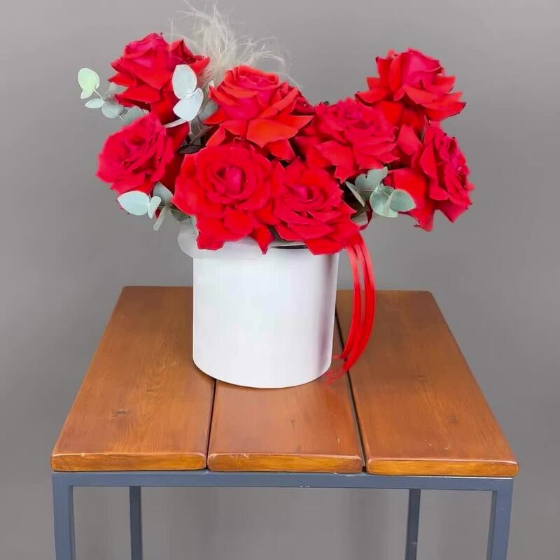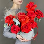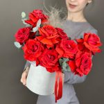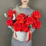 Чарующая французская роза с эвкалиптом в шляпной коробке приятно удивят получателя.Розы красные. Имеют ярко-красный оттенок.Французские розы не самые стойкие цветы, для того чтобы композиция простояла дольше, нужно поливать композицию (под основание цветов, не сверху)), … Показать ещётак чтобы оазис постоянно был влажный, это увеличит стойкость композиции.
