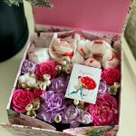 “Атлас☁️” – цветочная композиция с зефиром в деревянном ящике