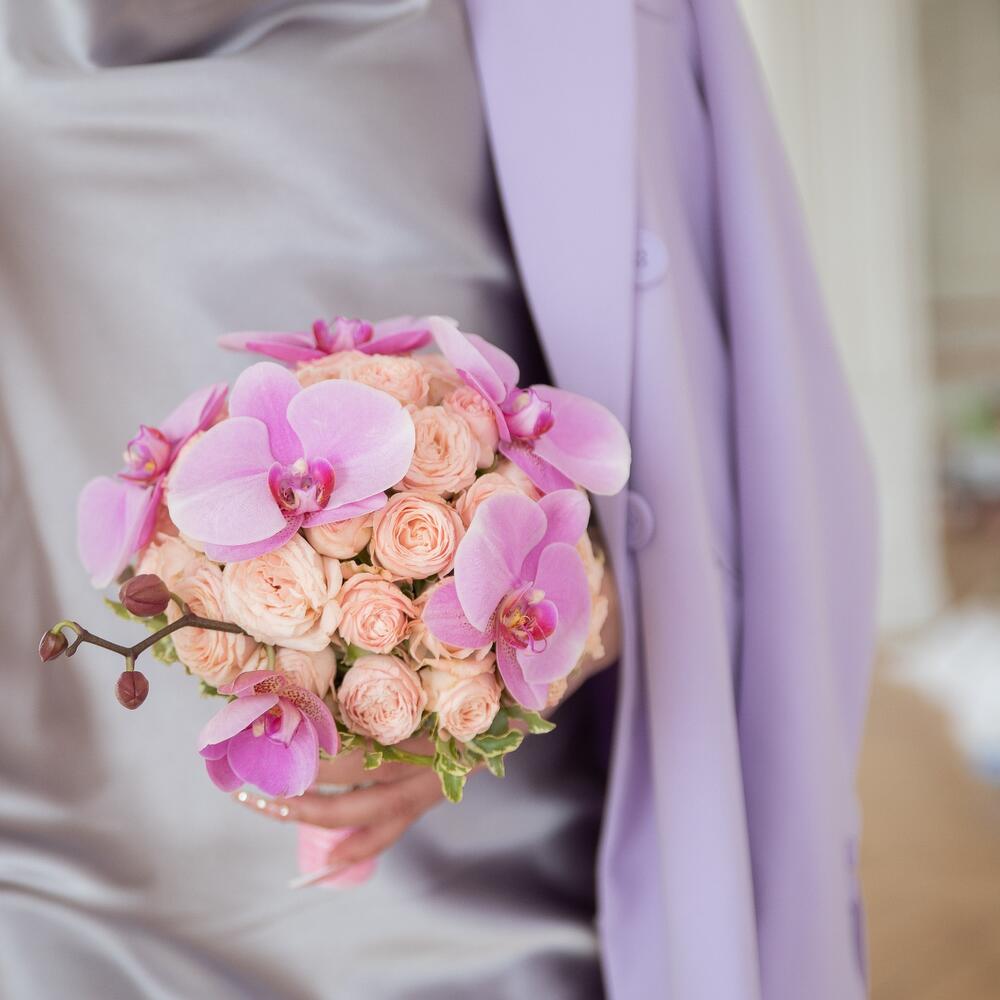 Нежный, изящный, неповторимый свадебный букет из орхидеи и кустовой розы!На свадебном торжестве и фотографиях главная конечно Невеста, но дополнением к её красоте будет необычный оригинальный свадебный букет!Цветы-это жизнь, цветы-это душа!Не устанем повторять-энергетика в цветах очень много значит! Мы будем рады ,что станем частичкой Вашего праздника и наши свадебные букеты, композиции, бутоньерки, браслетики из живых цветов для подружек невесты, оформление президиумов, арок и всего сопутствующего будут радовать Вас ещё долгое время и в памяти на фотографиях