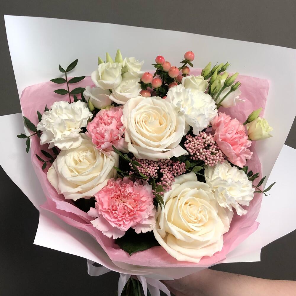 Гвоздики, Кустовые розы, Пионовидные розы, Розы