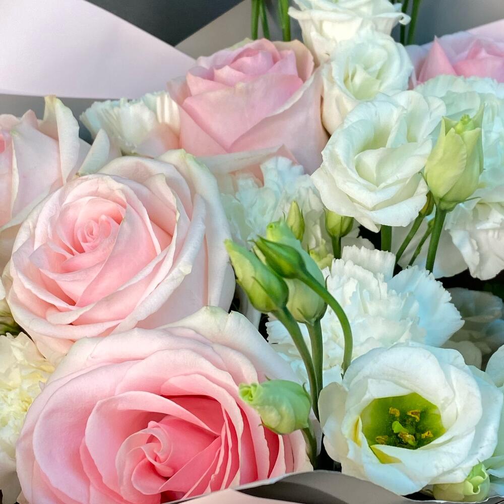 Категории: Гвоздики, Лизиантусы, Розы