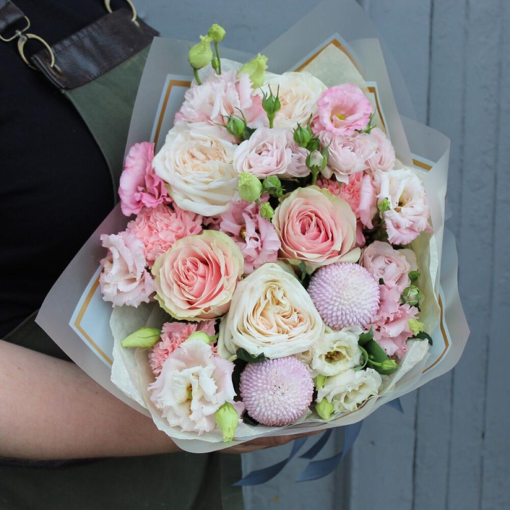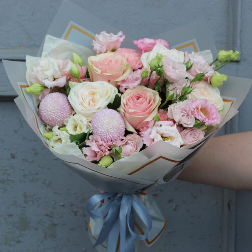 Категории: Гвоздики, Лизиантусы, Пионовидные розы, Розы