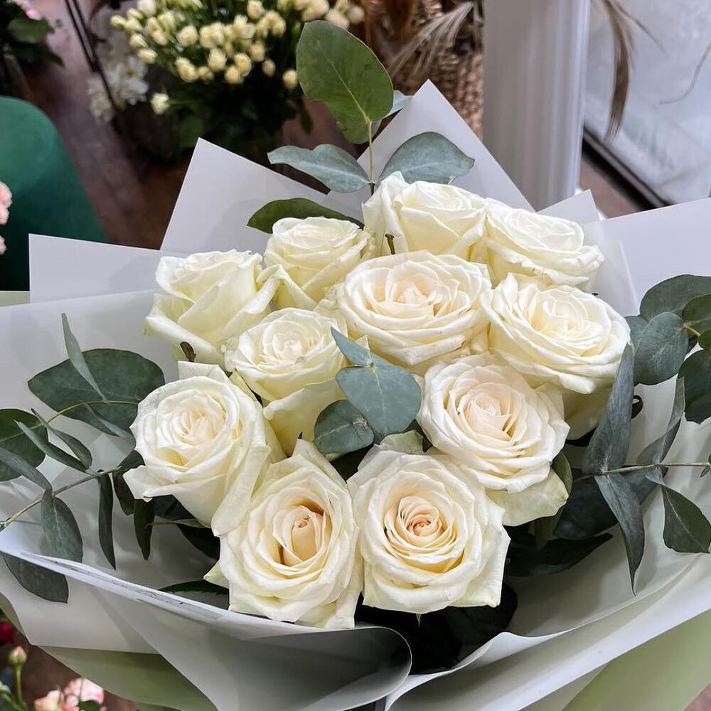 Eucalyptus – 5 шт. White rose – 11 шт. packaging design – 3 шт. gift message card – 1 шт. care instruction – 1 шт.