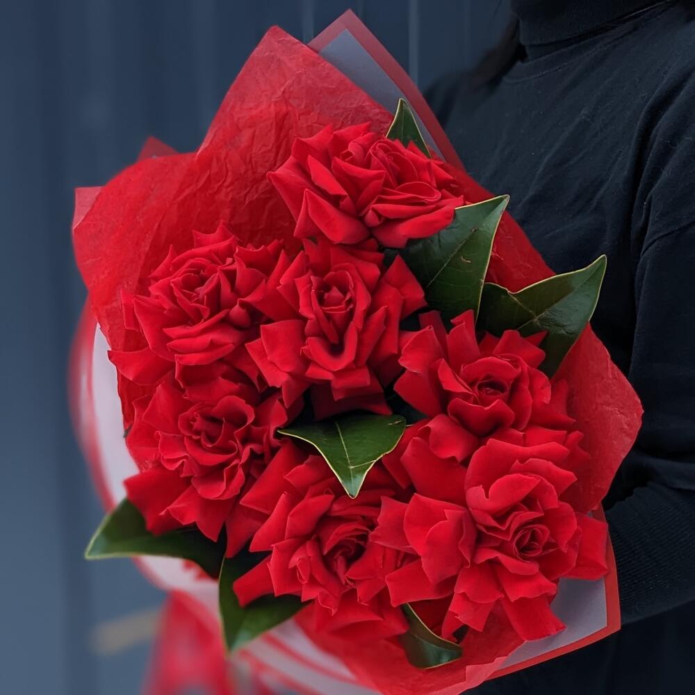 Французская роза – 7 шт. магнолия ветка – 2 шт. Упаковка дизайнерская – 1 шт.