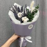 Хлопок натуральный – 3 шт.Лаванда – 1 шт.Эвкалипт – 3 шт.Упаковка дизайнерская – 1 шт.Лагурус (сухоцвет) – 3 шт.