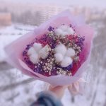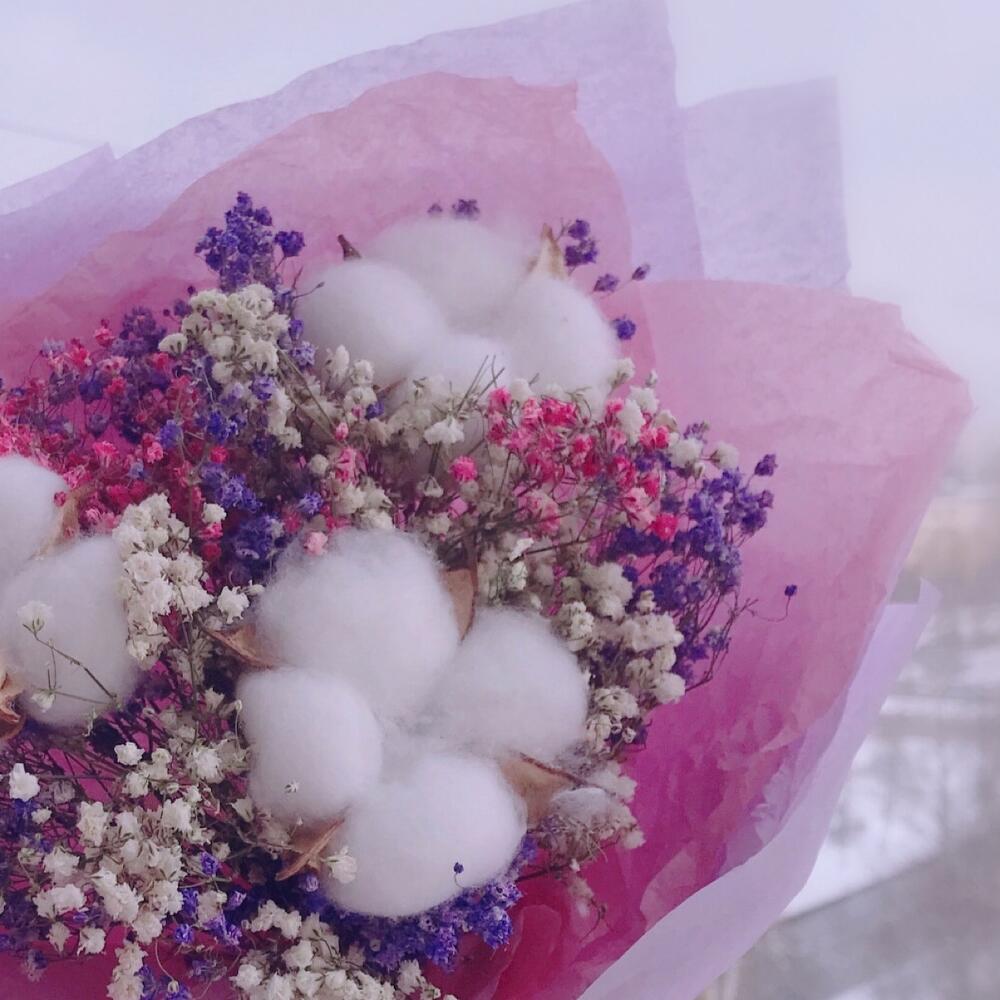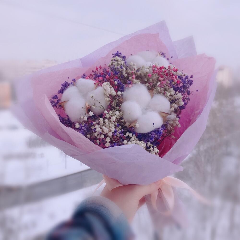 Букет сухоцветов из радужной гипсофилы и хлопка