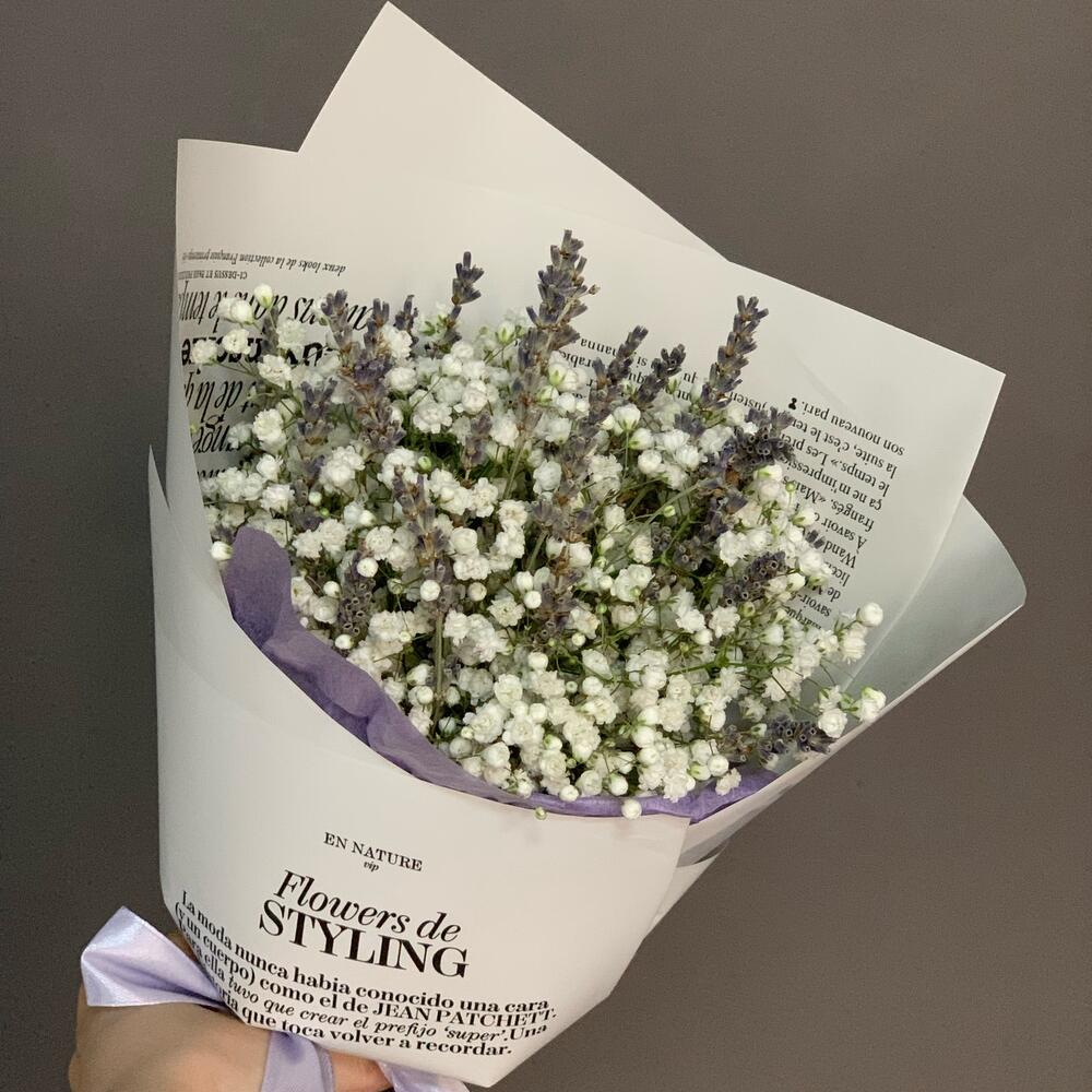 Гипсофила – 15 шт.Лаванда – 36 шт.дизанерская упаковка – 1 шт.