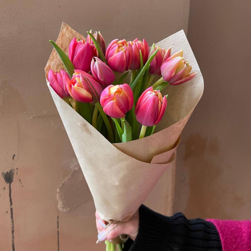 Крафтовая упаковка – 1 шт.Розовый пионовидный тюльпан – 11 шт.